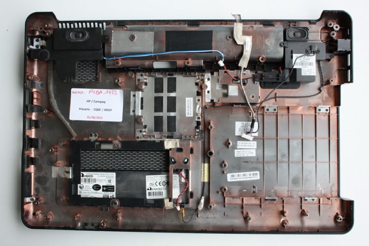 Plasturgie coque inferieure HP COMPAQ PRESARIO CQ60 -405SF ( bon etat) - Les trappes sous la coque et haut parleurs sont fournies - Licence / sticker Vista