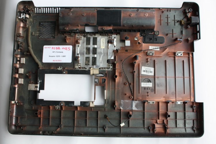 Plasturgie coque inferieure HP COMPAQ PRESARIO CQ70 -118EF / 205EF (Tres bon etat) - Les trappes sous la coque sont fournies sauf trappe disque dur