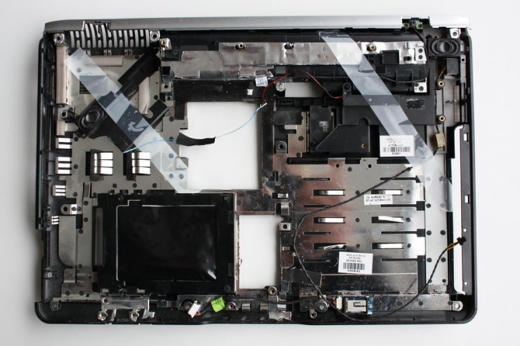 Plasturgie coque inferieure HP PAVILION DV2700 - 2850EF (bon etat / usure normal) - Haut parleur fourni - Les trappes sous la coque NON fournies - Licence / sticker Windows Vista present