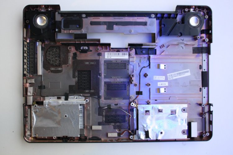 Plasturgie coque inferieure Toshiba Satellite P300 (Tres bon etat) - Les trappes sous la coque sont fournies - Haut parleur fourni